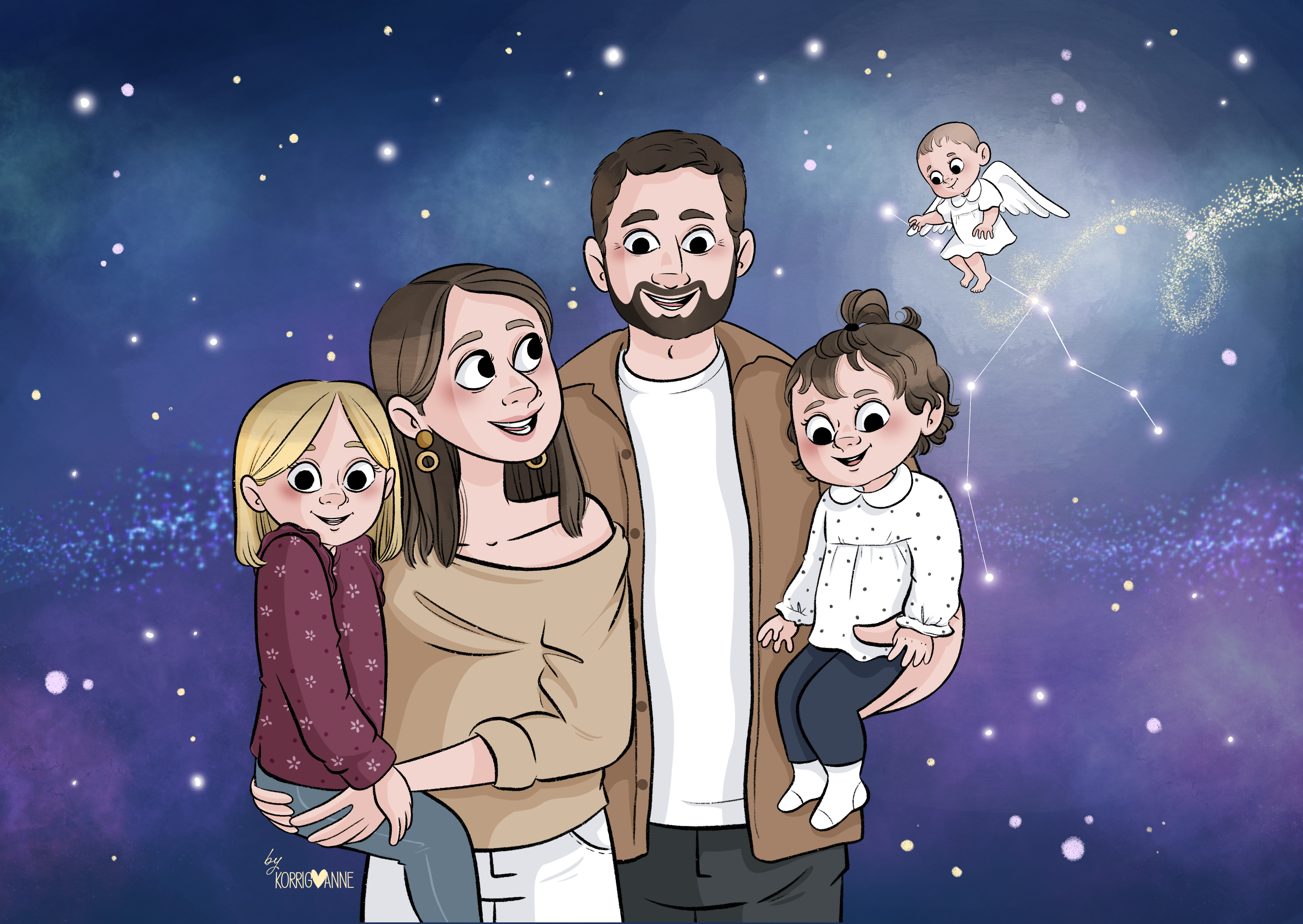 Pour dessiner leur famille, mes clients ont choisi la formule « portrait jusqu’à la taille » dans ma boutique.
