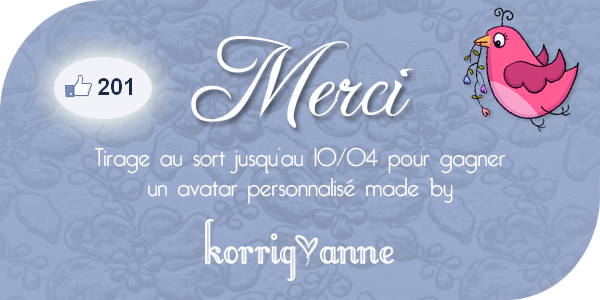 Merci à tous les participants également et j’espère que l’un d’entre eux aura à son tour l’immense honneur de s’offrir un magnifique avatar de Korrig’Anne aux 300 fans