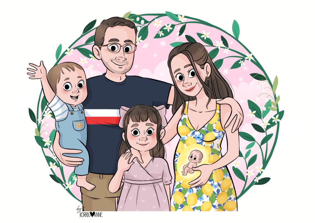 Pour immortaliser leur famille, mes clients ont choisi la formule « portrait jusqu’à la taille » avec décor graphique dans ma boutique.