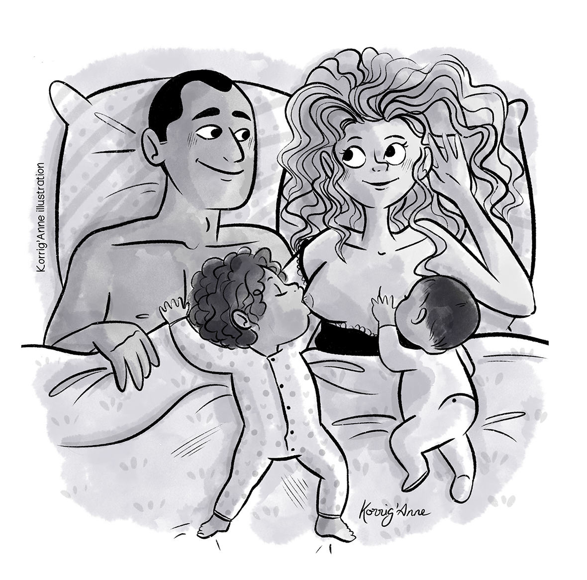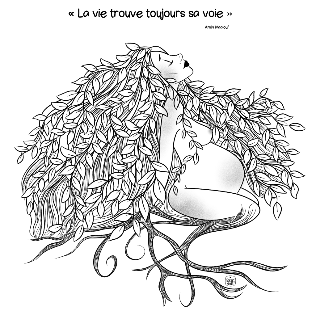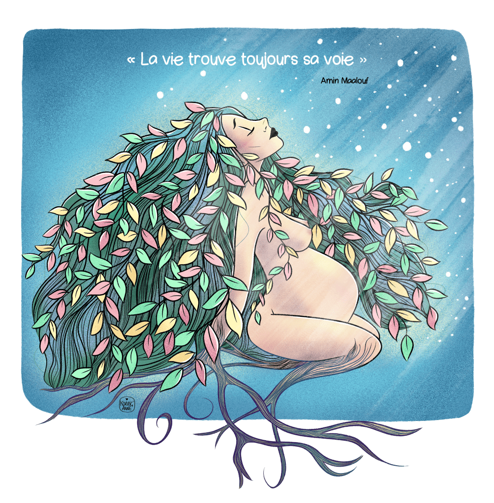 Cette illustration a fait partie d’un livret composé de messages et dessins de différentes personnes destinés à accompagner et à soutenir une amie pendant les heures de travail de la venue au monde de son petit amour.
