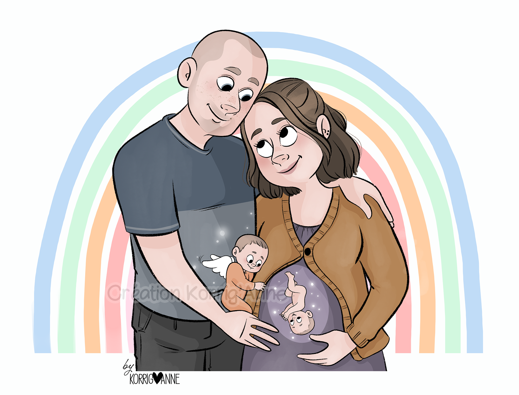 Fabriquer soi-même un petit arc-en-ciel ce n’est pas rien. Cela vient après une tempête immense et les nuages peuvent être lourds et nombreux en attendant sa naissance. Heureusement, un petit ange est bien présent et veille ardemment sur ce mini arc-en-ciel en préparation. Ne sous-estimons pas la force incroyable que les parents, et notamment la maman, doivent déployer pendant ces neuf mois. C’est surhumain. Ce sont des héros. Et nous, nous sommes la foule invisible de ceux qui les soutiennent de tout notre cœur.