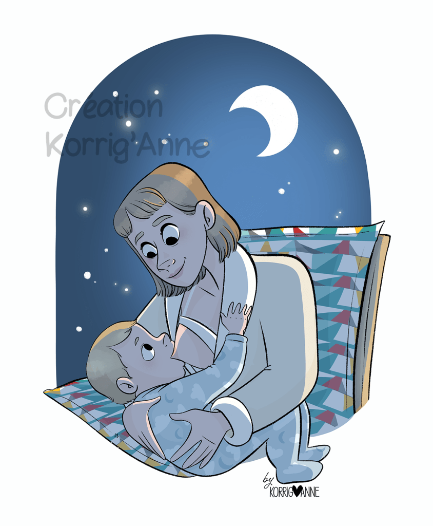 Je suis dessinatrice des familles, pas un gourou donneur de leçon. Je serais ravie vous créer aussi de beaux souvenirs de biberonnages. Contactez-moi si ça vous dit !
