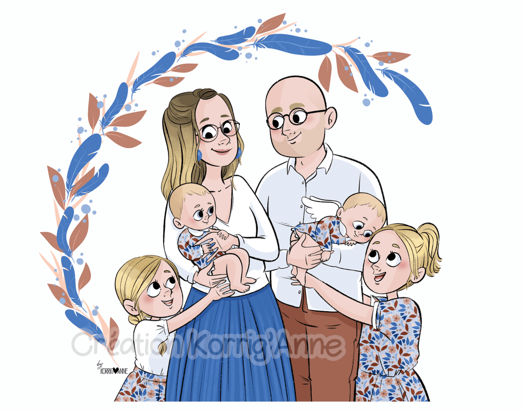 Chers amis, la saison des portraits de famille est repartie ! Après une petite pause pas du tout reposante (les fêtes de Noël, vous connaissez le truc…) mais très ressourçante, je reviens stylet en main pour me mettre à votre service. Merci encore de me confier vos histoires et vos projets 💙💙💙 Et si le cœur vous en dit, n’hésitez pas à faire voyager mes dessins pour les faire connaitre. Belle journée 🥰