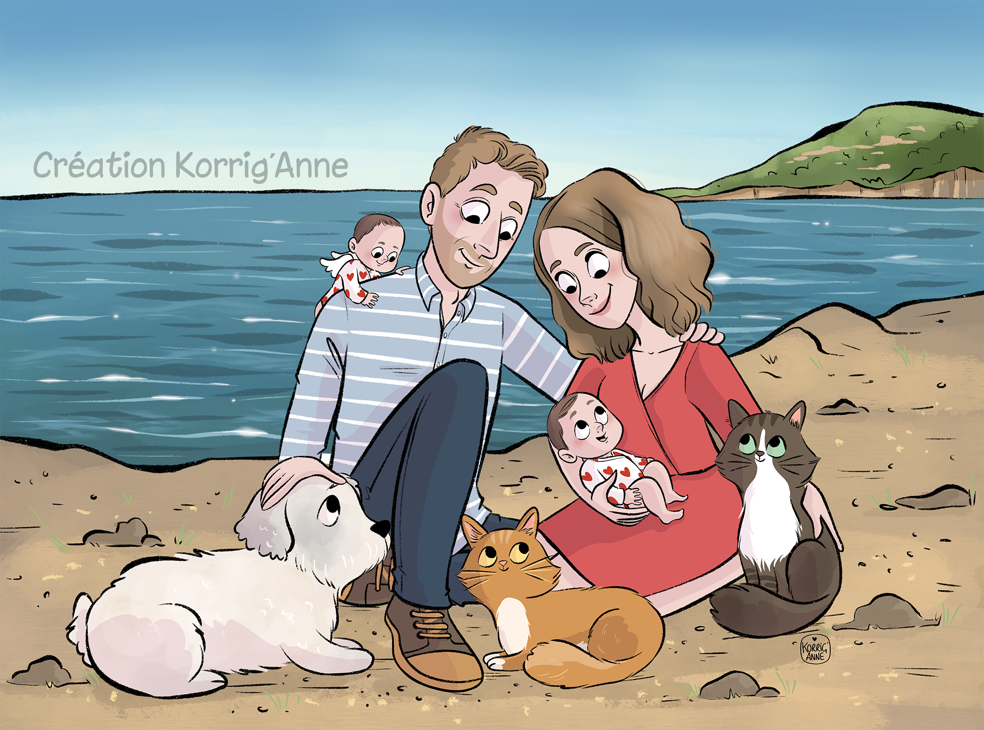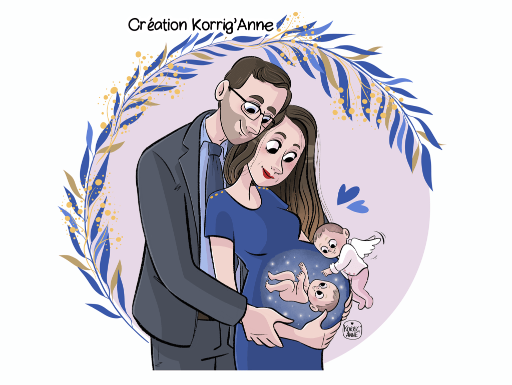 #portraitdefamille #famille #dessin #illustration #art #bébé #naissance #parents #maman #bébéange #bébéarcenciel