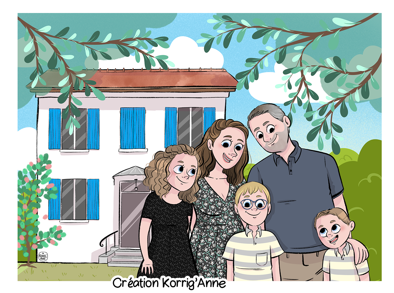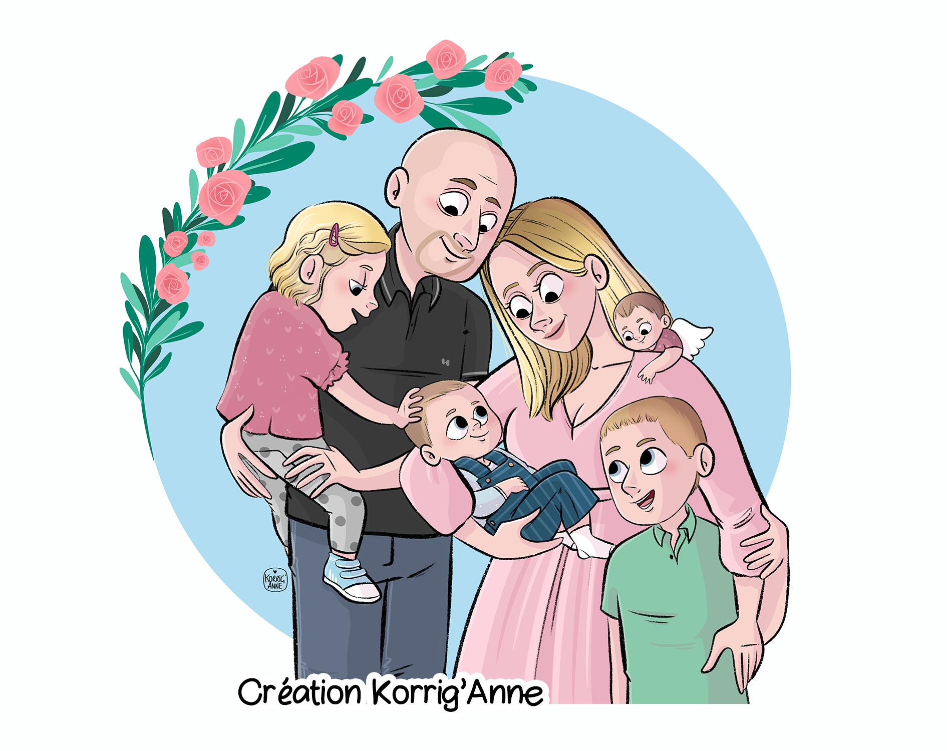 Portrait jusqu’aux pieds personnalisé, à retrouver ici : portrait personnalisé illustré.
