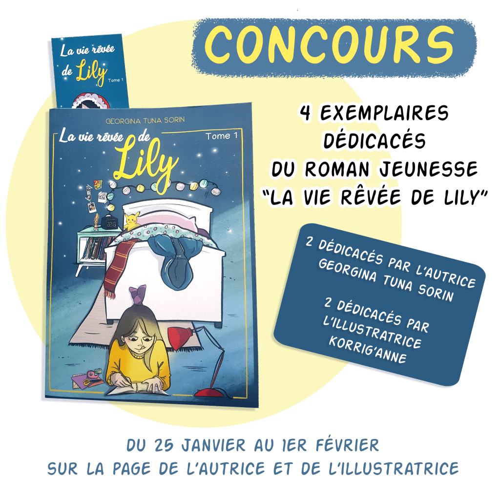 Ce n’est pas 1 mais 4 exemplaires dédicacés de son roman jeunesse « La vie rêvée de Lily » tome 1, illustré par mes soins qui sont à gagner avec des petits goodies. 🎁🎁🎁🎁 C’est l’occasion de vous annoncer que nous travaillons toutes les deux en ce moment-même à la sortie d’un tome 2 ! Yihaaa !