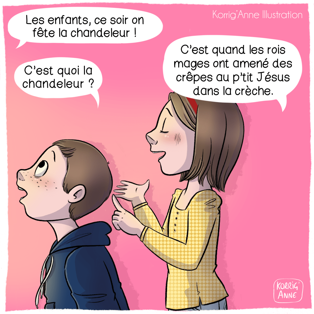 – C’est quand les rois mages ont amené des crêpes au p’tit Jésus dans la crèche. »