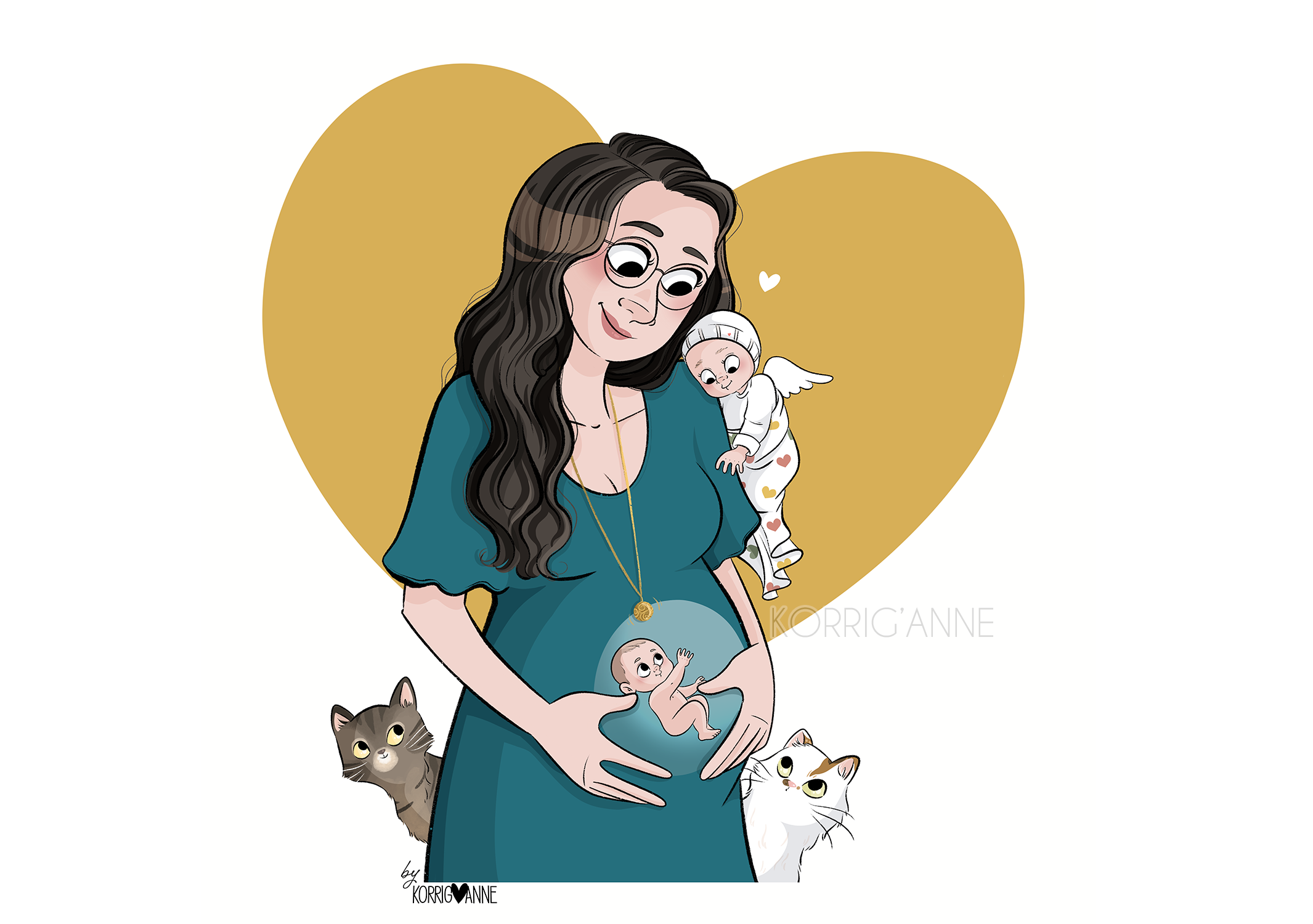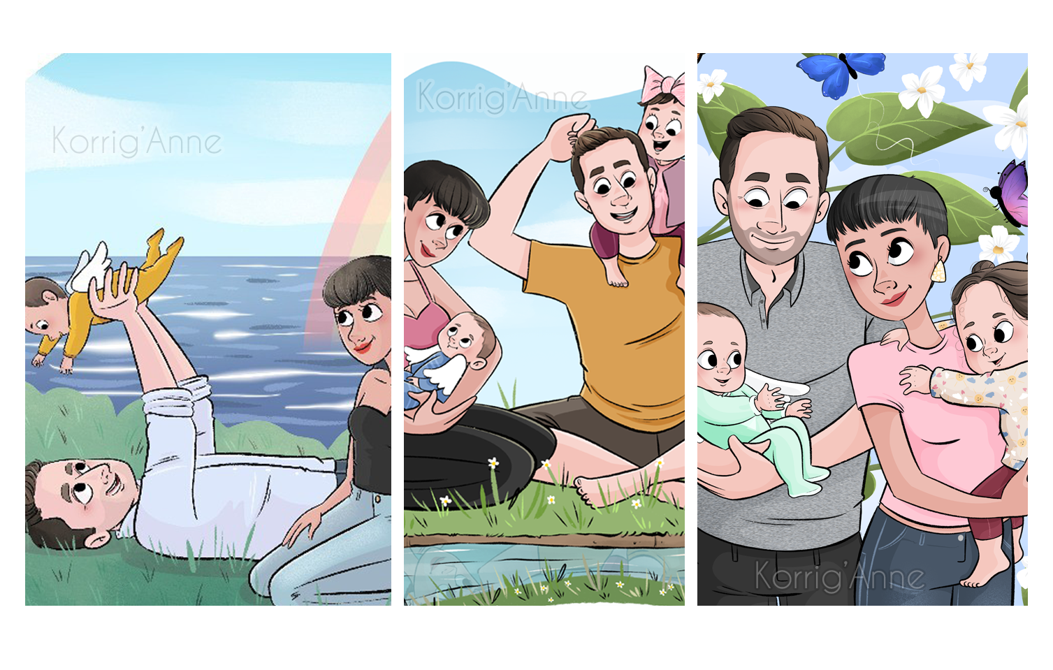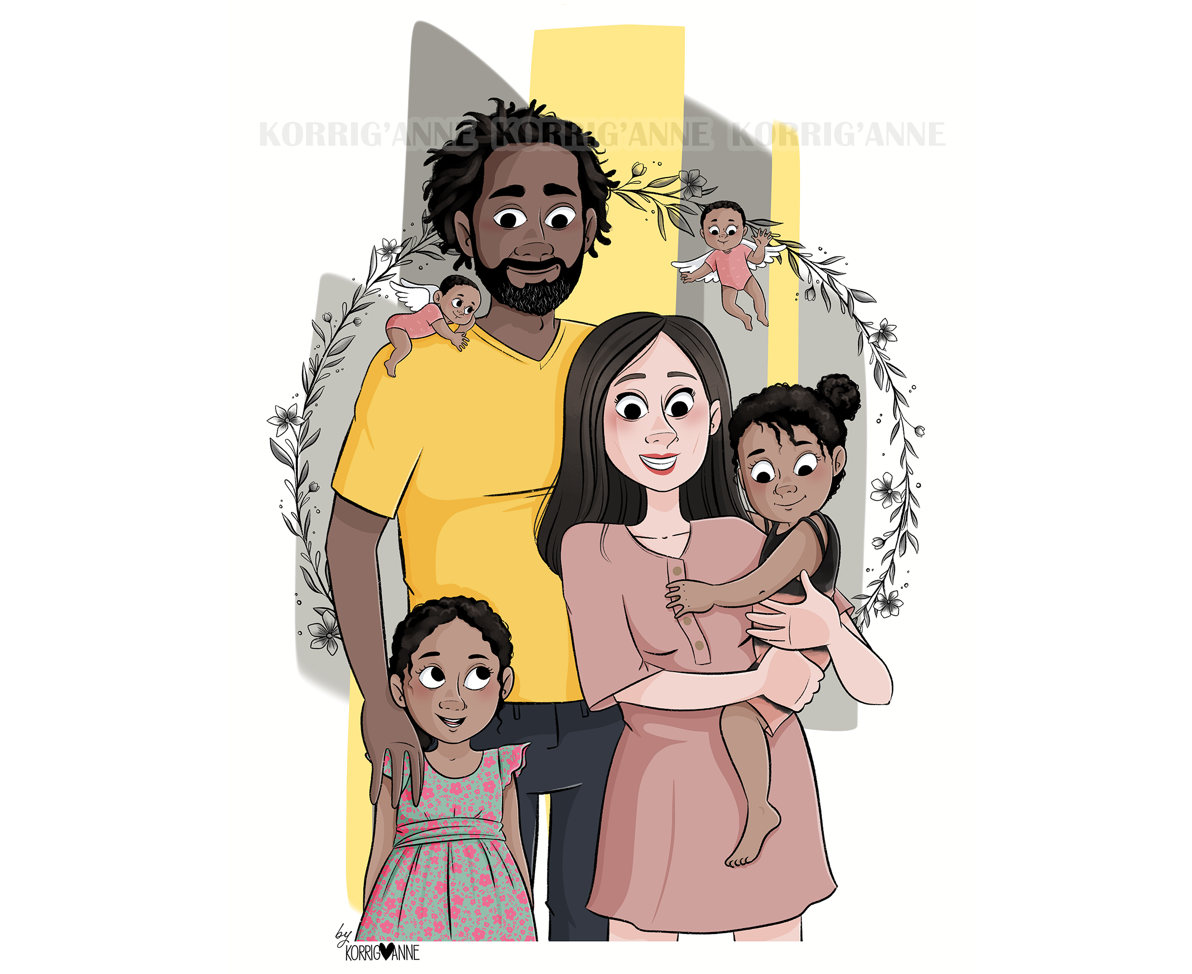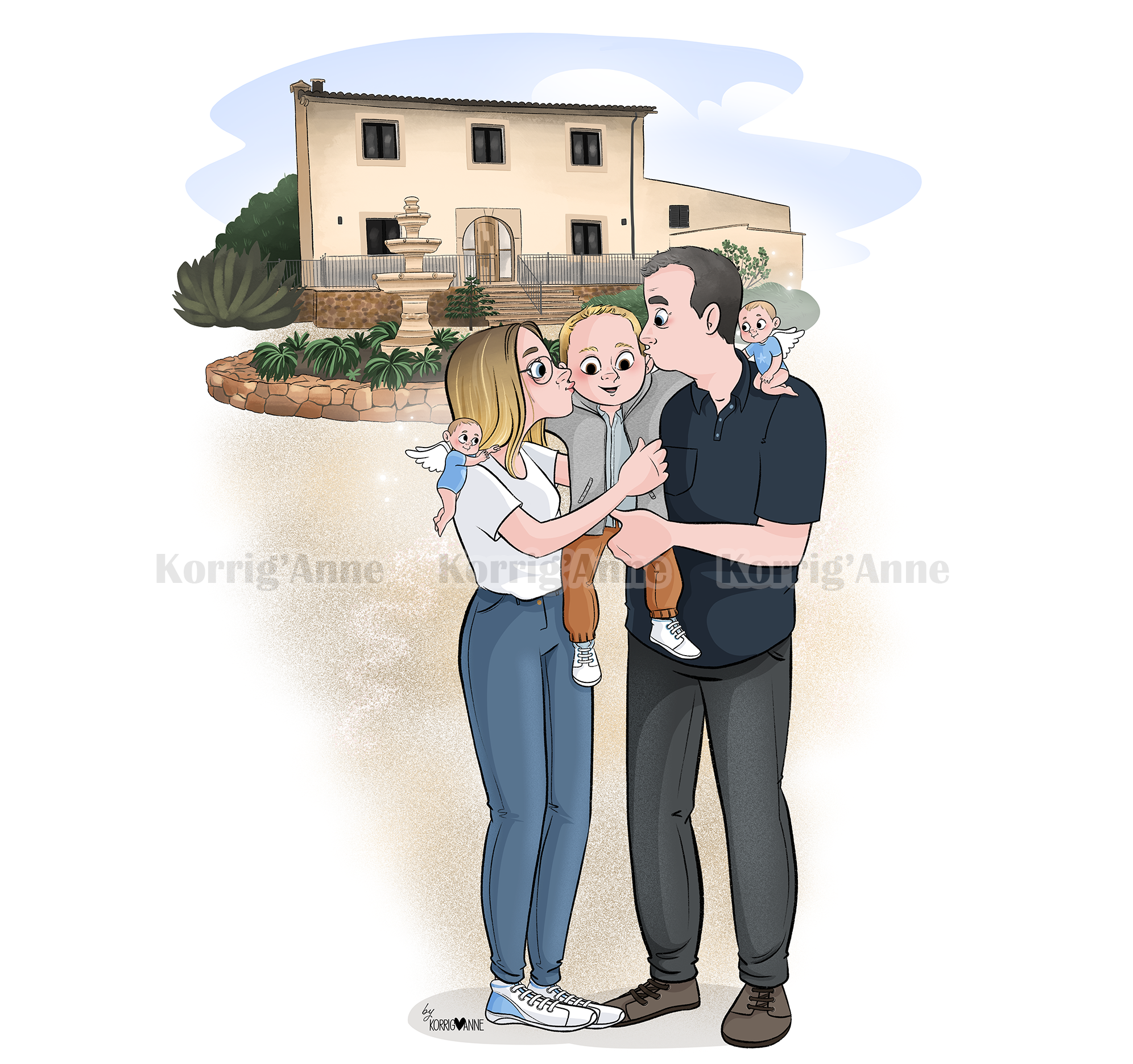 J’ai été profondément émue en découvrant ce portrait. Mon cœur se serre à l’idée que mes enfants ne pourront jamais être réunis sur une même photo. Mais ce portrait exprime avec tant de justesse ce que je ressens au fond de moi : nous sommes une famille. Au complet. Une vraie famille, unie par l’amour, la tendresse, la douceur. Ma petite princesse, partie trop tôt, y est représentée avec une fidélité bouleversante et une infinie délicatesse. Et mon petit espoir, qui grandit en moi, y trouve aussi toute sa place. Merci pour ce si beau et précieux cadeau. 🌟🤍 Sarah