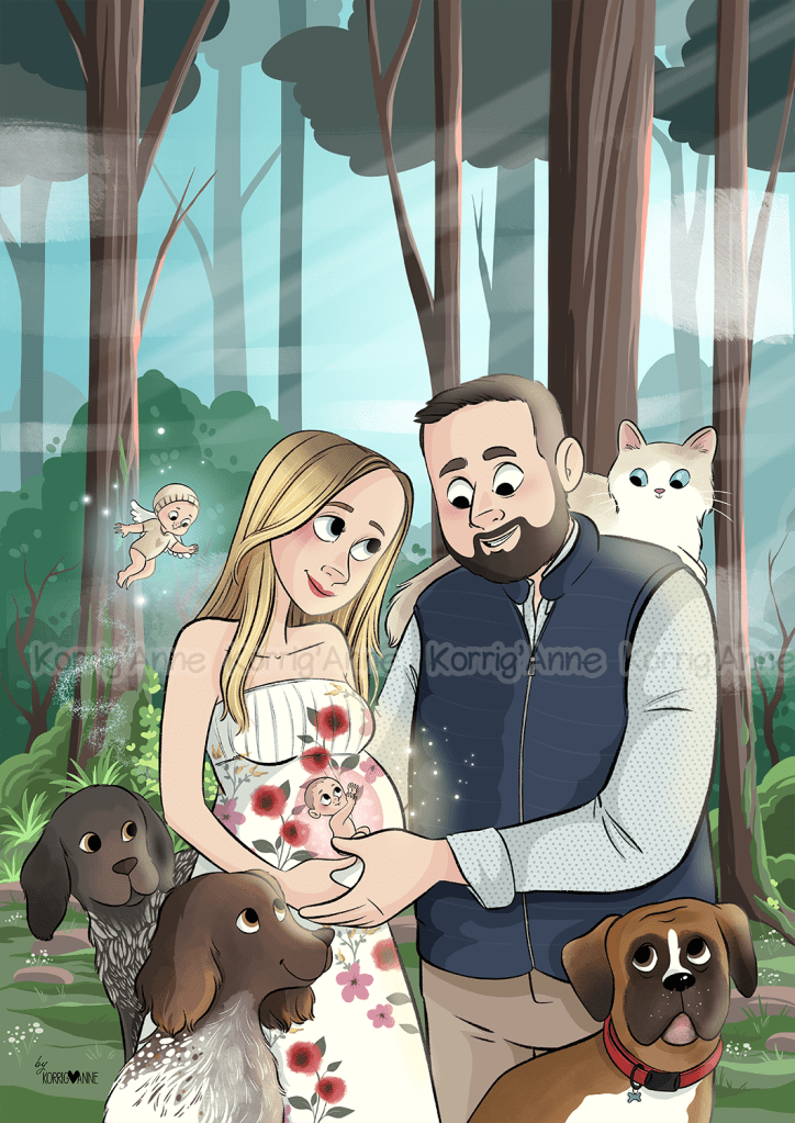 L’amour s’invite dans vos familles. Encore un beau projet d’illustration pour immortaliser et rendre visible l’histoire de cette famille et le bonheur qui vient frapper à la porte. Merci, mille fois merci de votre confiance ♥