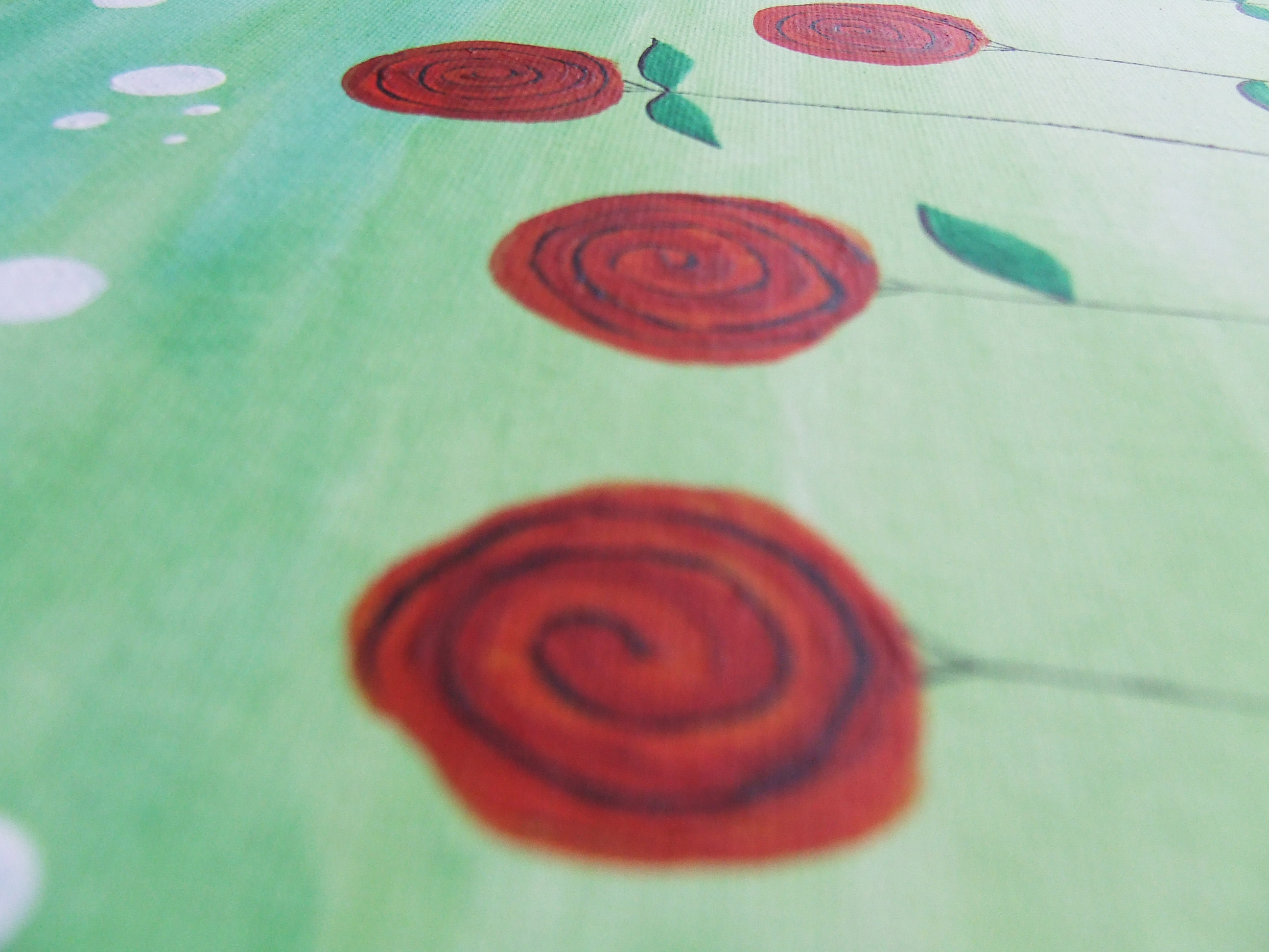 Chaque toile fait 50cm de large et les couleurs imposées étaient le noir, l’anthracite, le rouge et le blanc.