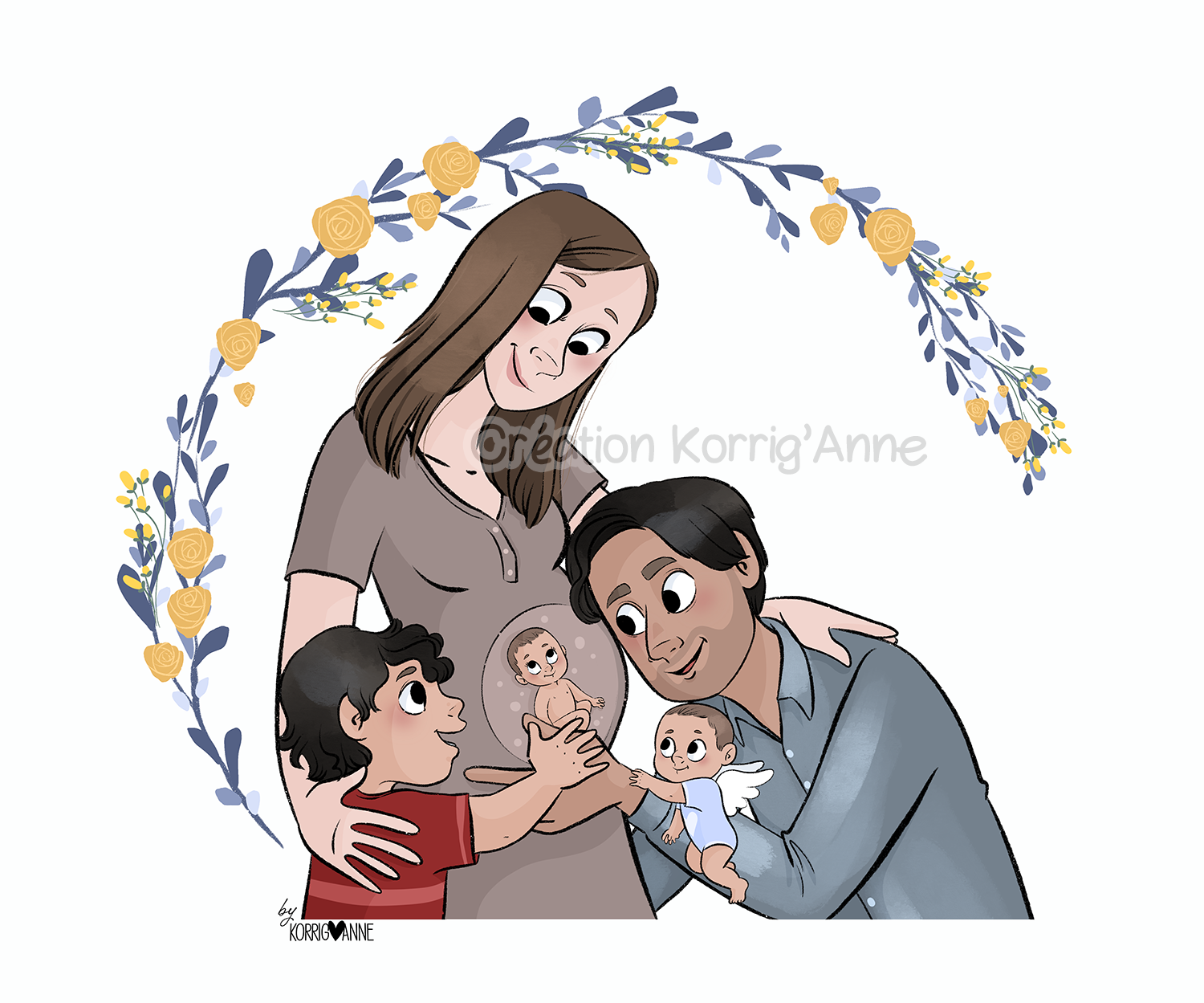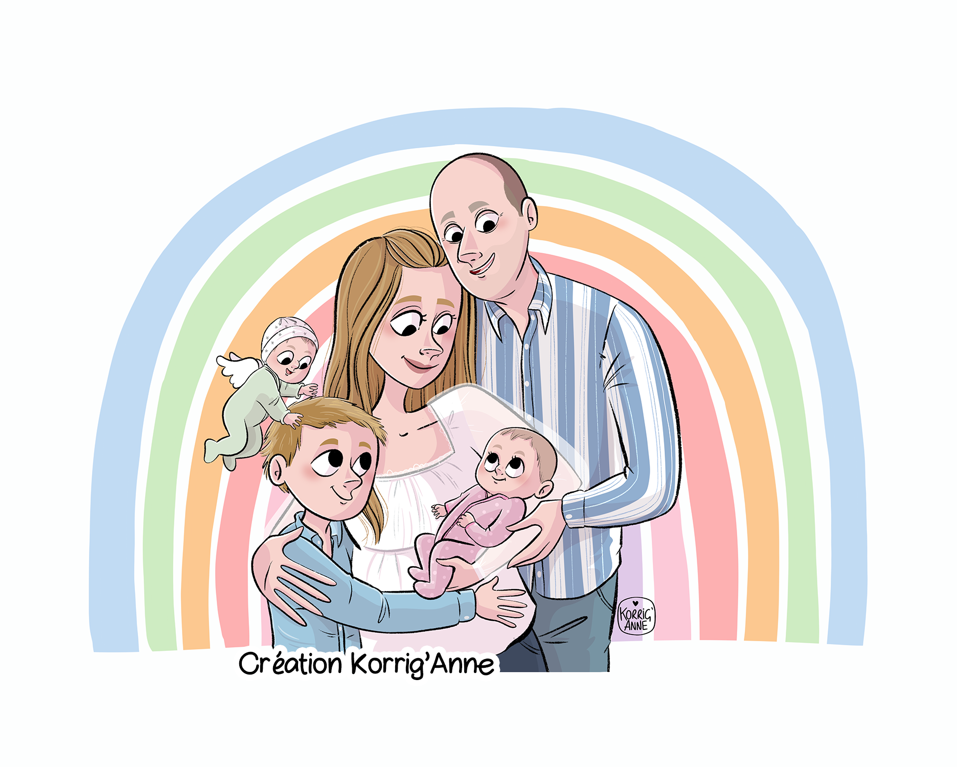 This drawing is a custom order, it was created to fulfill the desire of a bereaved mommy to represent both Louna and her angel sister Anaëlle.