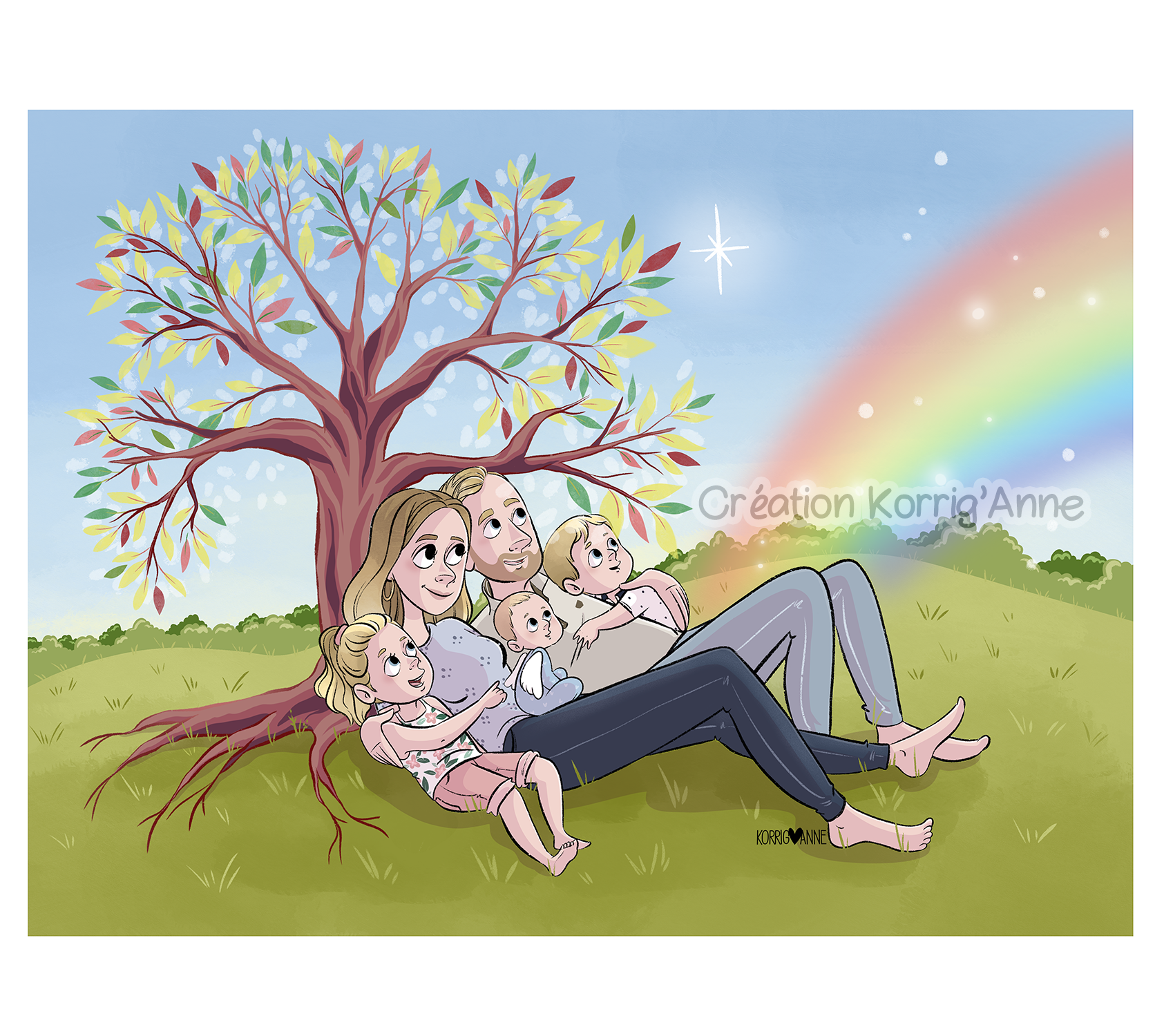 Ce dessin il émane d’une commande, c’est le dessin voulu par une maman. Ce dessin représente Louna et sa grande soeur ange Anaëlle.