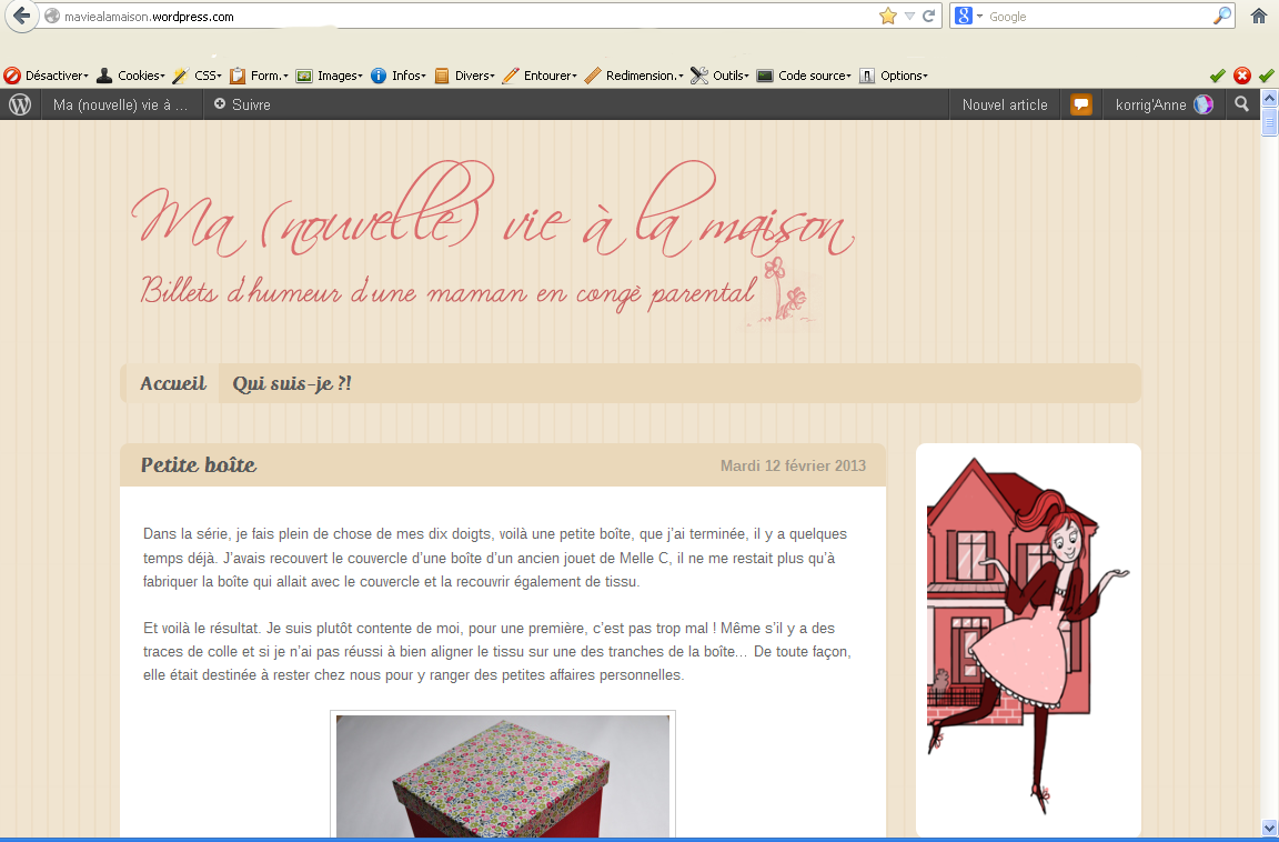 Et voilà un nouveau design complet que je viens de réaliser pour le blog « Ma (nouvelle) vie à la maison« .
