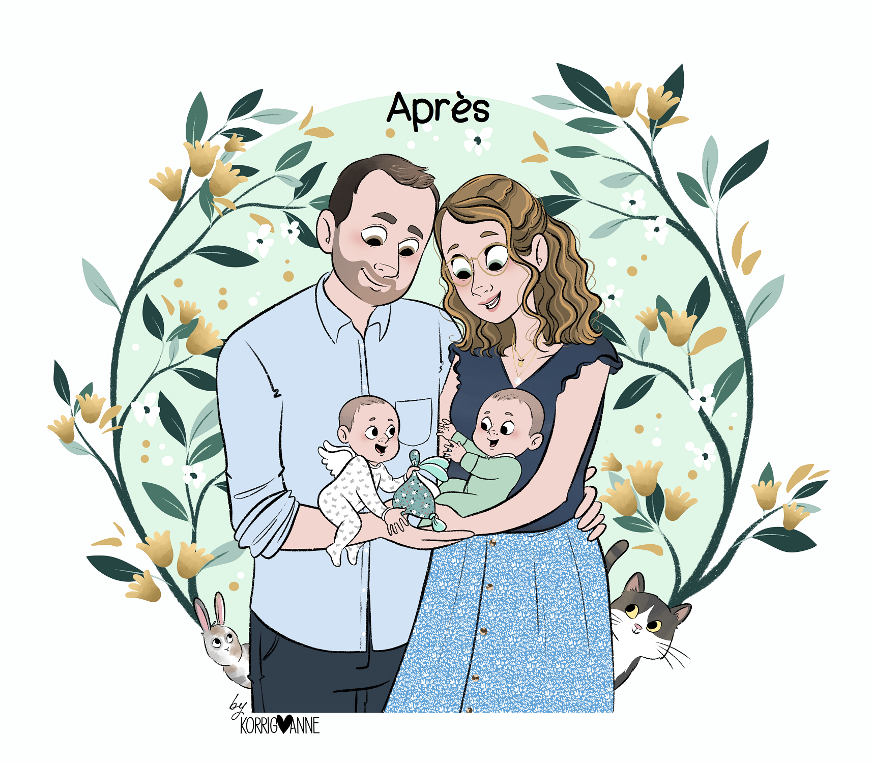 Nicolas et Aude ont choisi le portrait en étoile pour représenter leur famille. Un portrait qui peut se tourner dans le sens qu’on veut !
