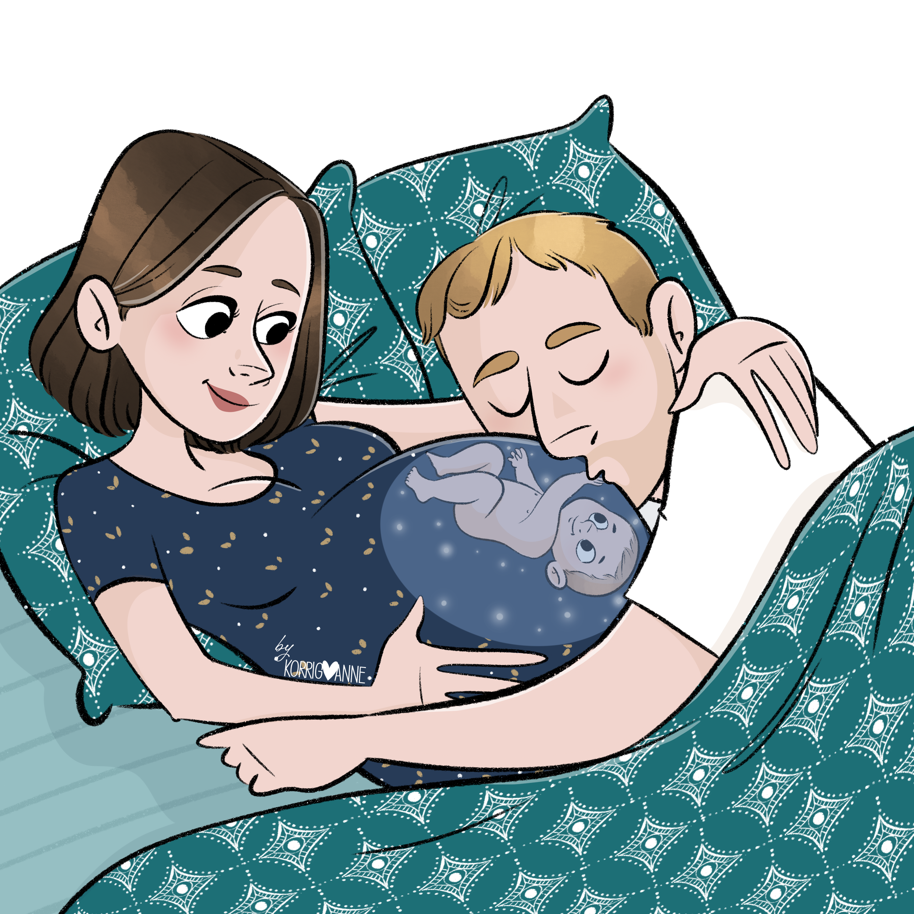 Vous souvenez-vous de l’illustration ci-dessous ? Je l’ai faite il y a plusieurs années et elle avait parlé à pas mal de monde alors j’ai eu envie d’en faire une nouvelle version plus complète. J’avais à cœur de rendre plus visible et concrète la relation père-enfant pendant la grossesse.