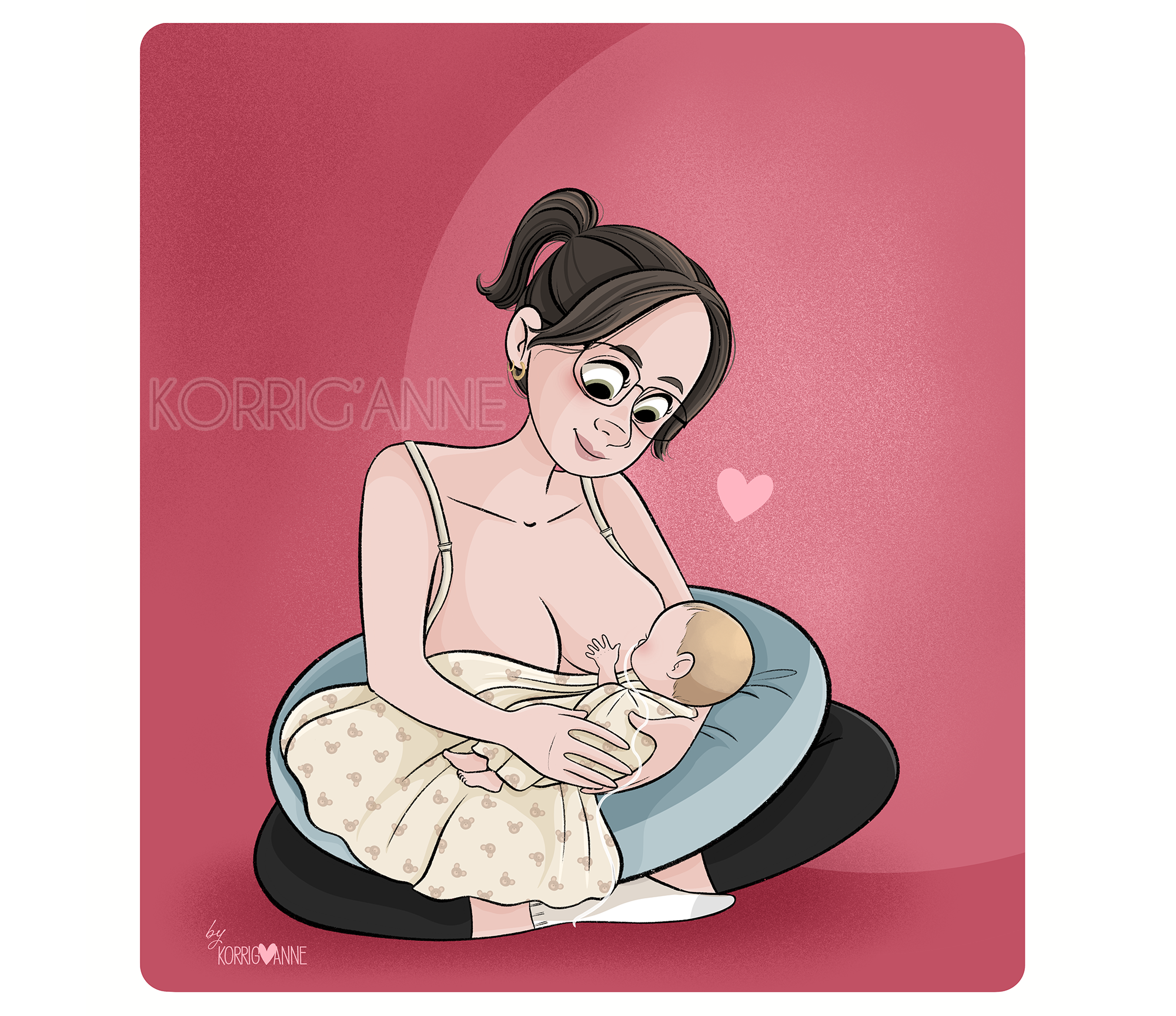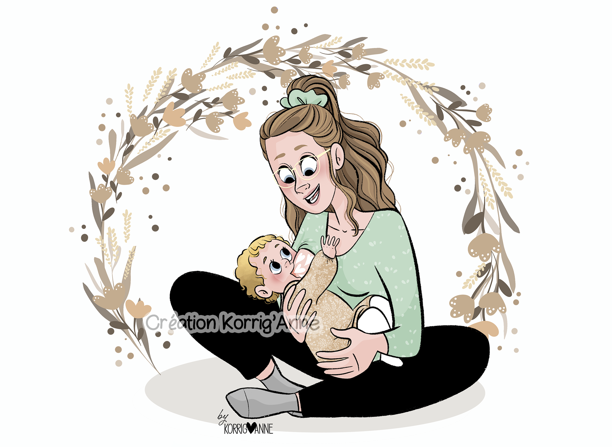 « Je ne voulais absolument pas allaiter, puis la vie en a décidé autrement puisque mon fils est arrivé avec deux mois et demi d’avance. Je ne me suis pas posé de question quand on m’a dit que l’allaitement était le mieux pour lui. Au début c’était très difficile, j’étais accrochée à mon tire-lait comme une huître à son rocher sans vraiment réussir, puis mon fils a été assez fort pour être mis au sein. Je me suis dit, allez on essaie de tenir six mois. Finalement, nous avons été jusqu’à ses 20 mois avec des pleurs pour moi de ne pas pouvoir aller plus loin. Ça me tenait à cœur d’avoir ce portrait car je n’ai aucune belle photo de notre allaitement, alors que pour moi ça représente vraiment toute notre histoire. Merci pour ce portrait qui me rappelle d’où on est parti, et tout le chemin que nous avons parcouru avec, aujourd’hui, un petit garçon en pleine santé ♥ » – Nolwenn